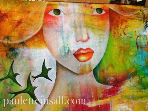I started see bird shapes to the left of her, so I drew them in...then painted them. :)