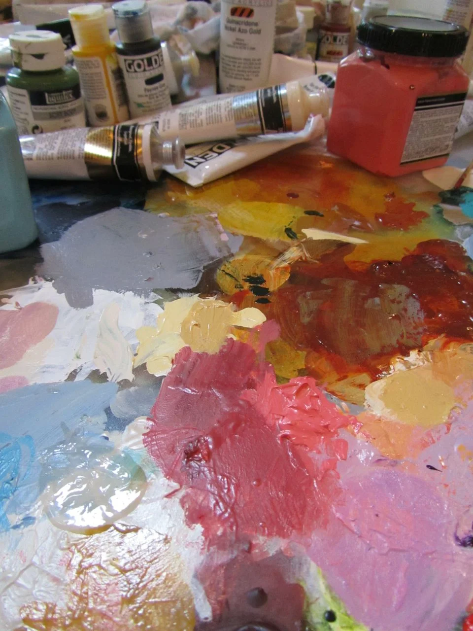 I use a large piece of plexiglass I got locally years ago as my palette. Makes it super easy to just peel up the paint after the layers get thick. Then I have a nice clean palette again. I've heard that some painters like to use the large sheets of dried acrylic paint as collage in their paintings....which intrigues me, but I haven't tried it......yet. ;)