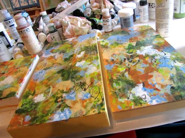 I finally got some productive time in my studio this week. Yea! I'm working on some new paintings for a local furniture store, but as one of my special peeps you get first dibs on these pieces. So if one of these makes your heart happy and you want it to brighten your home, get in touch because these beauties will be heading out the end of this month.